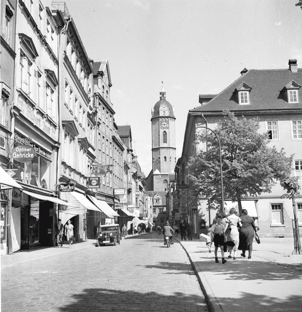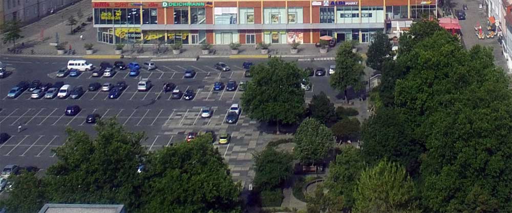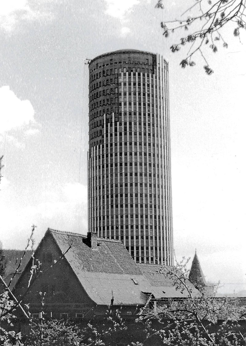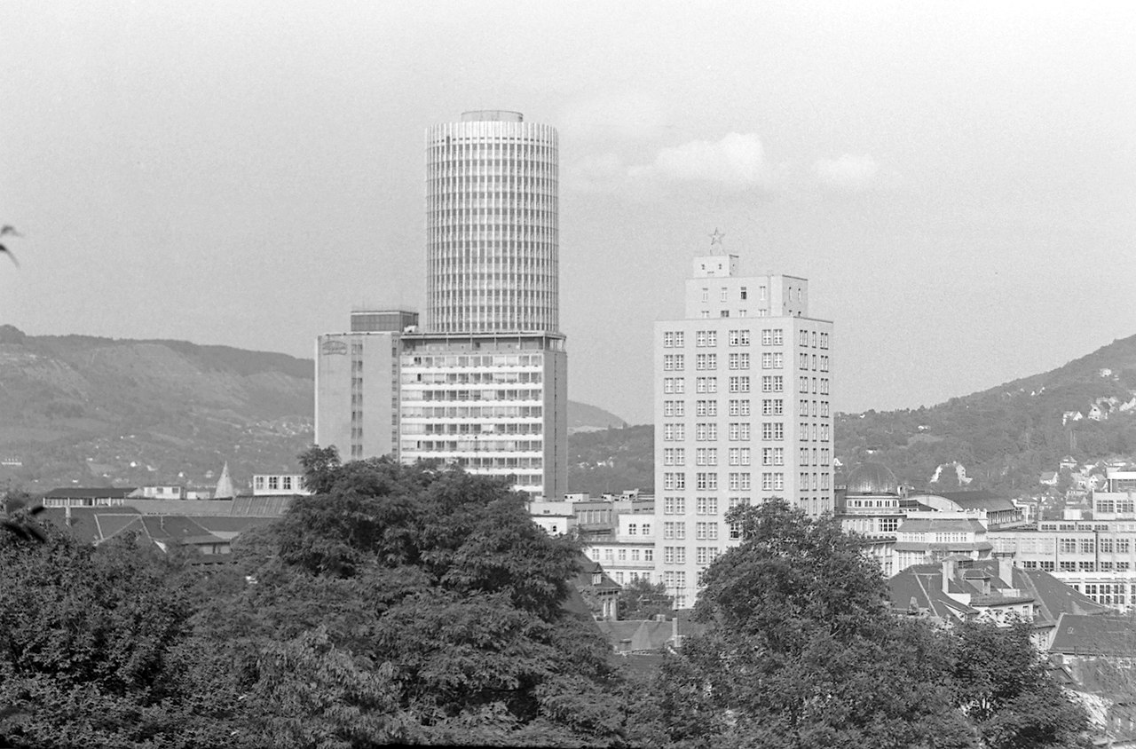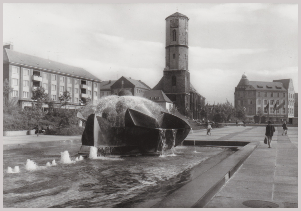 Die Baufeldfreimachung für den neuen Uniturm beginnt und die Gebäude rund um den Eichplatz werden weitgehend gesprengt um Platz für das Fundament des neuen Uniturmes zu schaffen. Ein großer Teil des ehemaligen Eichplatzes wird vom Fundament des Turmes beansprucht. Den eigentlichen Eichplatz gibt es daher für mehrere Jahre nicht mehr. Erst 1990 wird der Platz der Kosmonauten in Eichplatz umbenannt. Damit gibt es wieder einen Eichplatz in der Stadtmitte – allerdings mit etwas Abstand zum ursprünglichen Eichplatz. BILD: Von Jörg Blobelt – Eigenes Werk, CC BY-SA 4.0, https://commons.wikimedia.org/w/index.php?curid=101516762