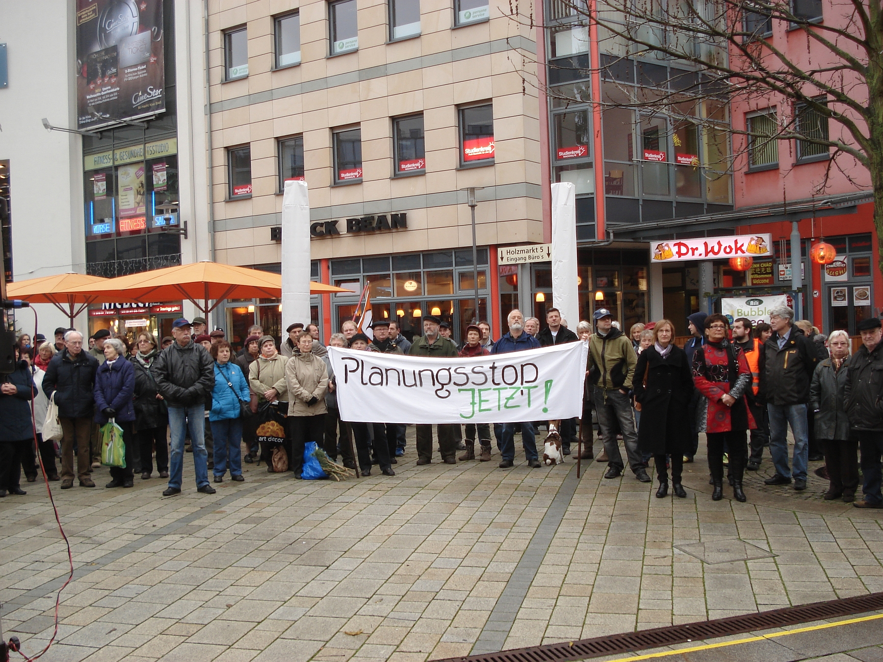 Bis zum Dezember 2013 unterstützten ca. 12.000 Menschen aus Jena und Umgebung mit ihrer Unterschrift, in Demonstrationen und anderen Aktionen den Aufruf zu einem „Moratorium“. Der Oberbürgermeister, Herr Dr. Schröter, stellte daraufhin eine Bürgervollbefragung zum geplanten Projekt in Aussicht.