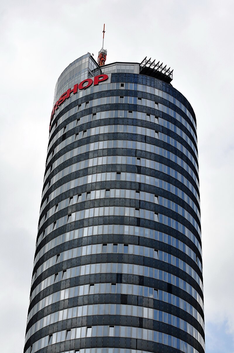 Als präventive Maßnahme wurden sämtliche Fassadenbereiche des Turms, die ausschließlich mit Verkleidungselementen (ohne Fenster) versehen sind, vollständig mit einem Schutznetz umgeben. Ziel war es, das Risiko weiterer Glasablösungen und potenzieller Gefährdungen für Passanten und Fahrzeuge dauerhaft zu minimieren. BILD: Von Ralf Roletschek – Eigenes Werk, GFDL 1.2, https://commons.wikimedia.org/w/index.php?curid=25931092
