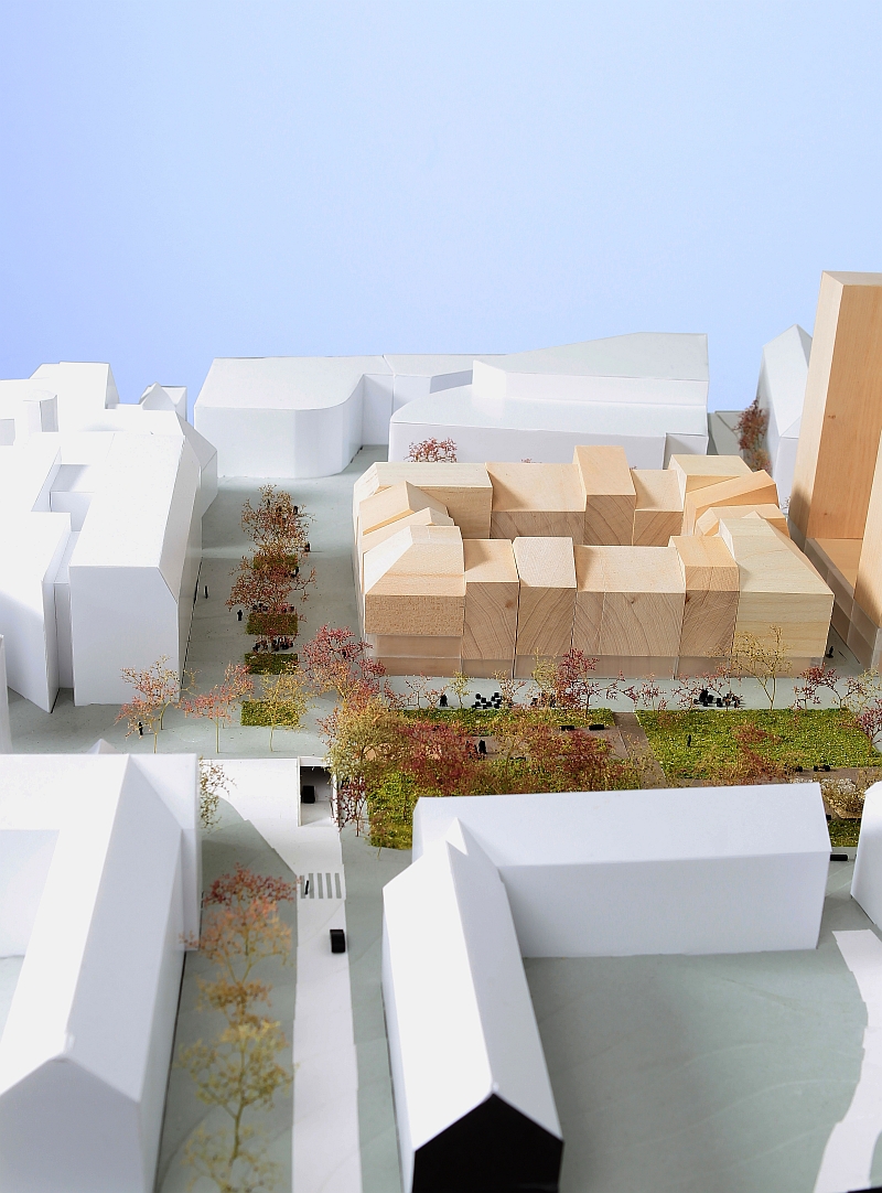 ■ Nur den halben Parkplatz bebauen. – Wir haben auf einen Block verzichtet, und es gibt echte Innenhöfe zu ebener Erde.