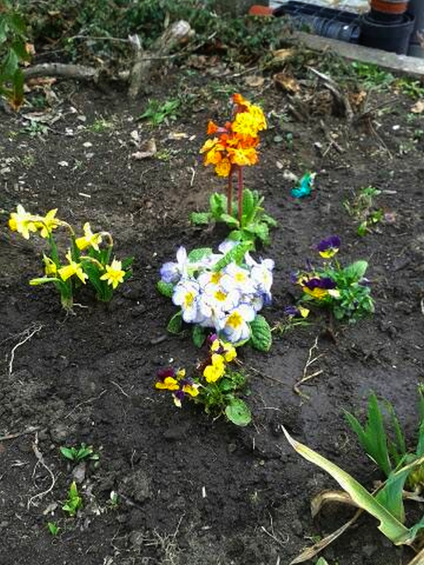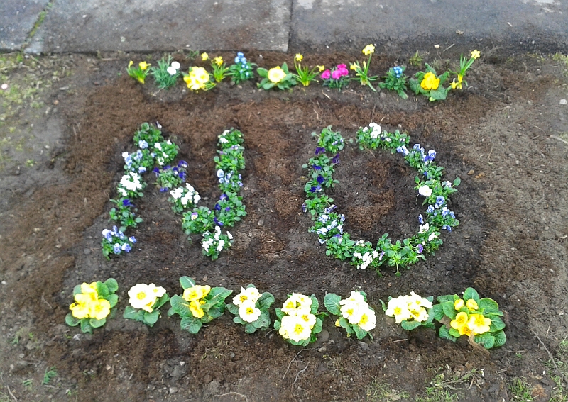 Weitere Blumenspenden sind willkommen. In den beiden runden Beeten in Richtung Kirchplatz aber bitte auf die Narzissen achten, die noch nicht so sehr auffallen.
